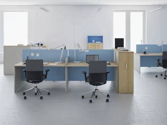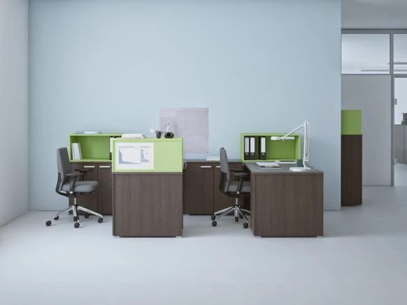 Мебель для персонала СМАРТ разработана в одной из самых расширенных вариаций модельного ряда, представленных на нашем сайте. Это поможет обставить кабинеты любой планировки и площади, плюсом оказывается и возможность сформировать пространство в формате «open space», сильно экономя драгоценные метры и облегчая доступ руководства к работникам. При заказе предоставляется выбор, какая перегородка, отделяющая людей, войдет в конфигурацию: из ДСП или добавить тканевую обтяжку.