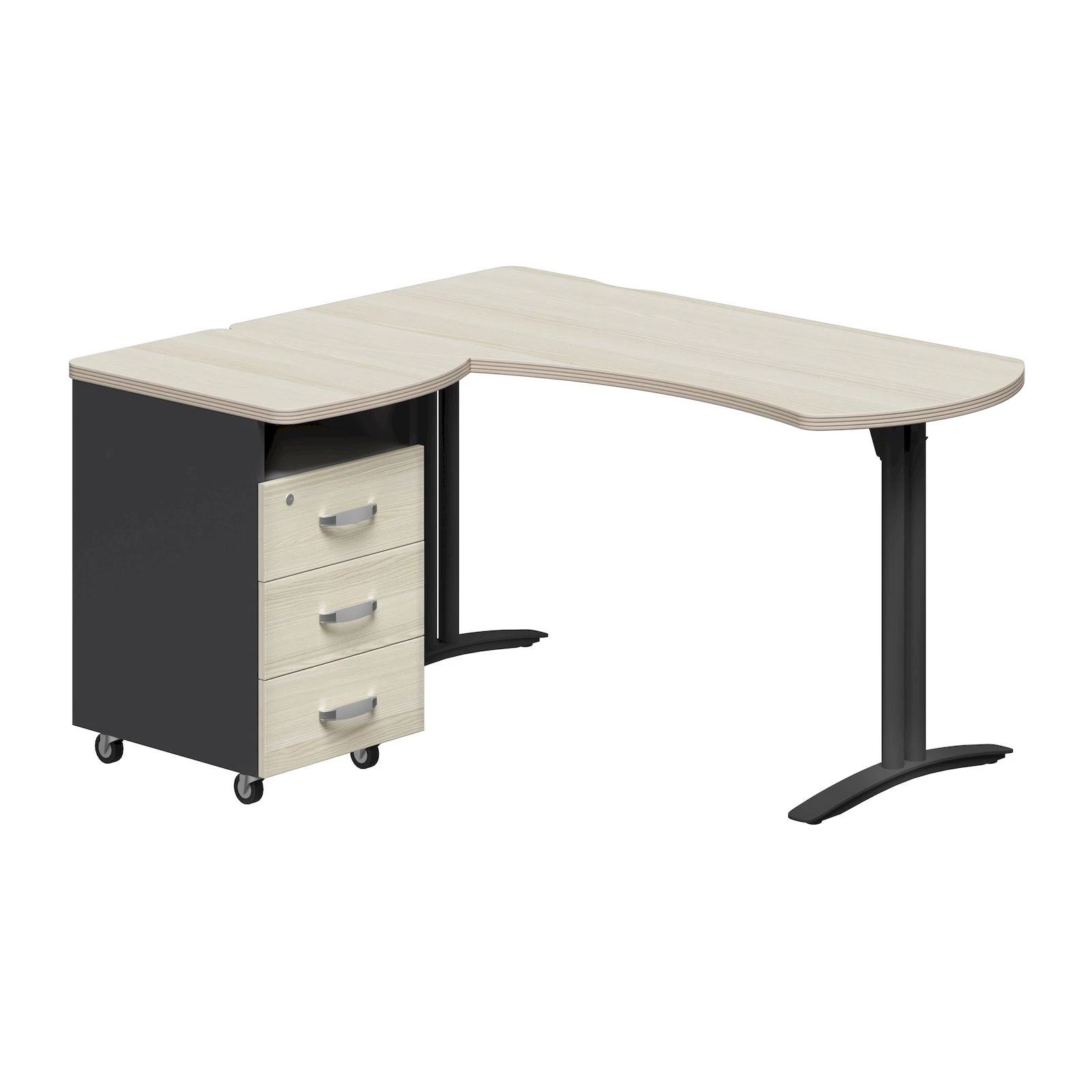 Рабочее место левое 140х120х74 Berlin Metal Акация светлая/Черный графит/Черный
