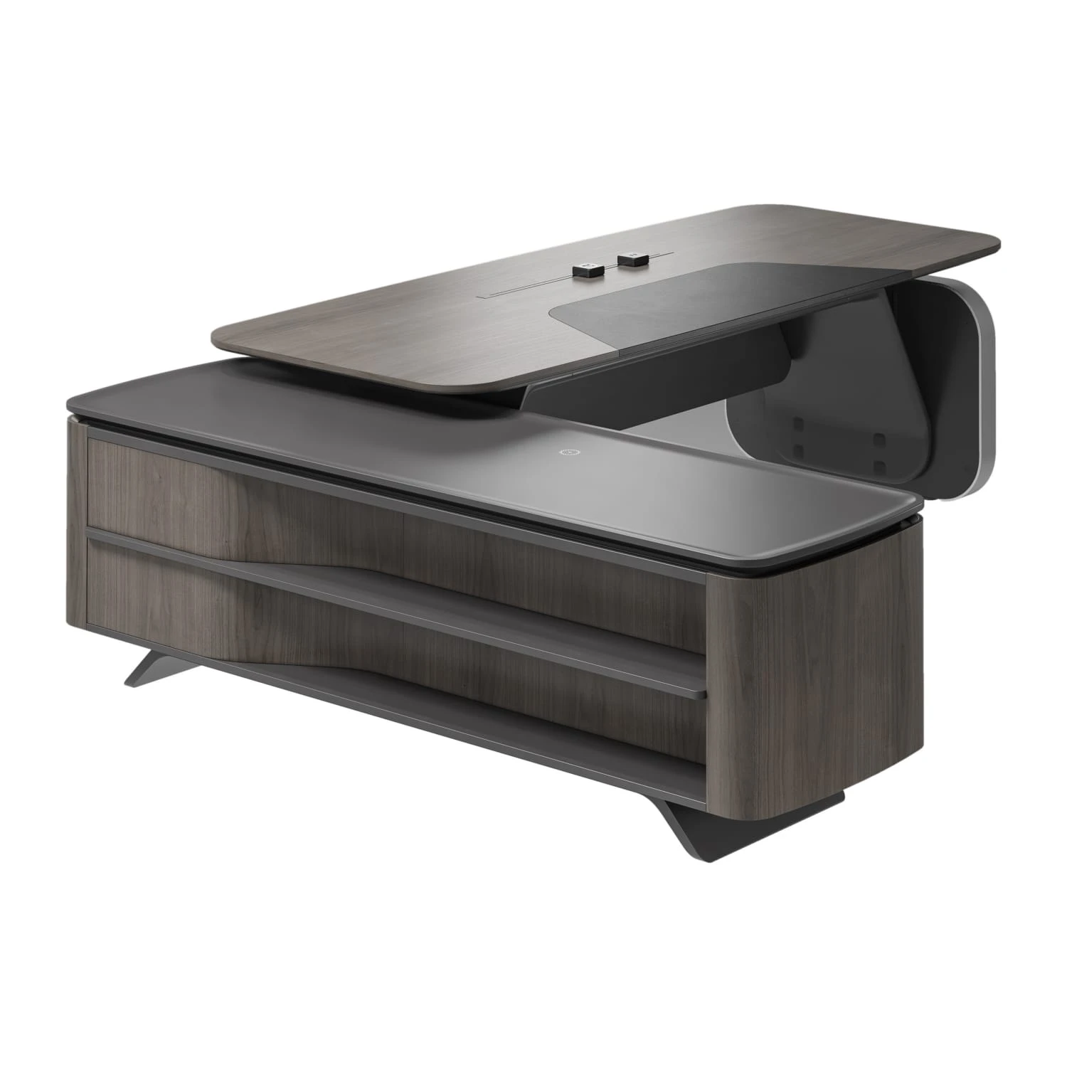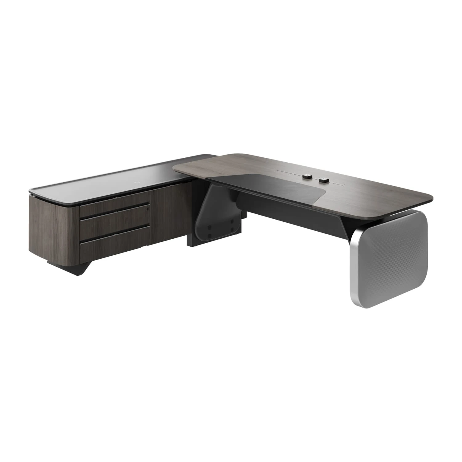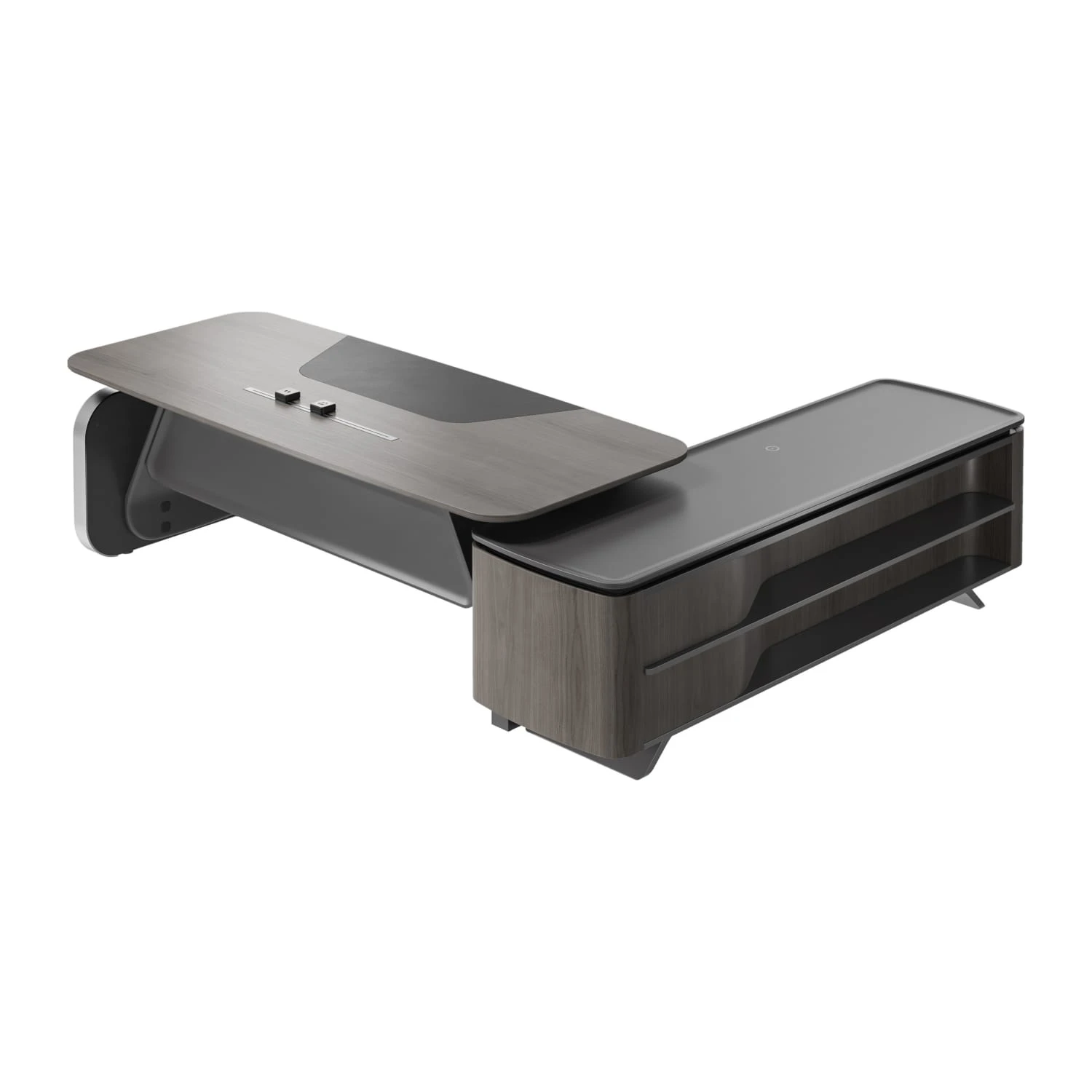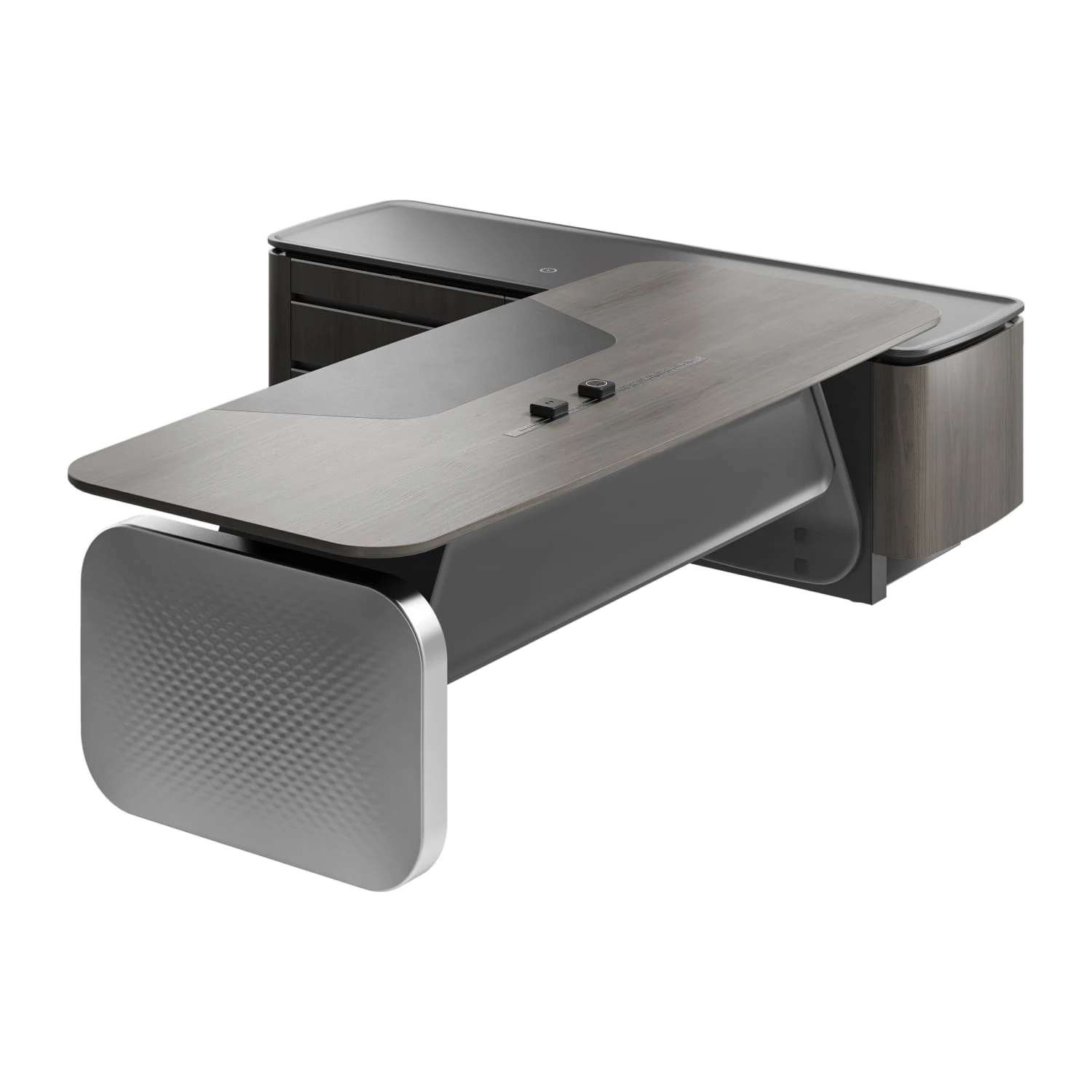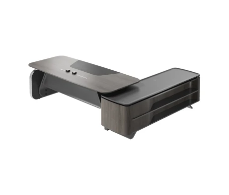 Стол руководителя на опорной сервисной тумбе - левый 2880x2240x750-1150 Atlas (Sun)