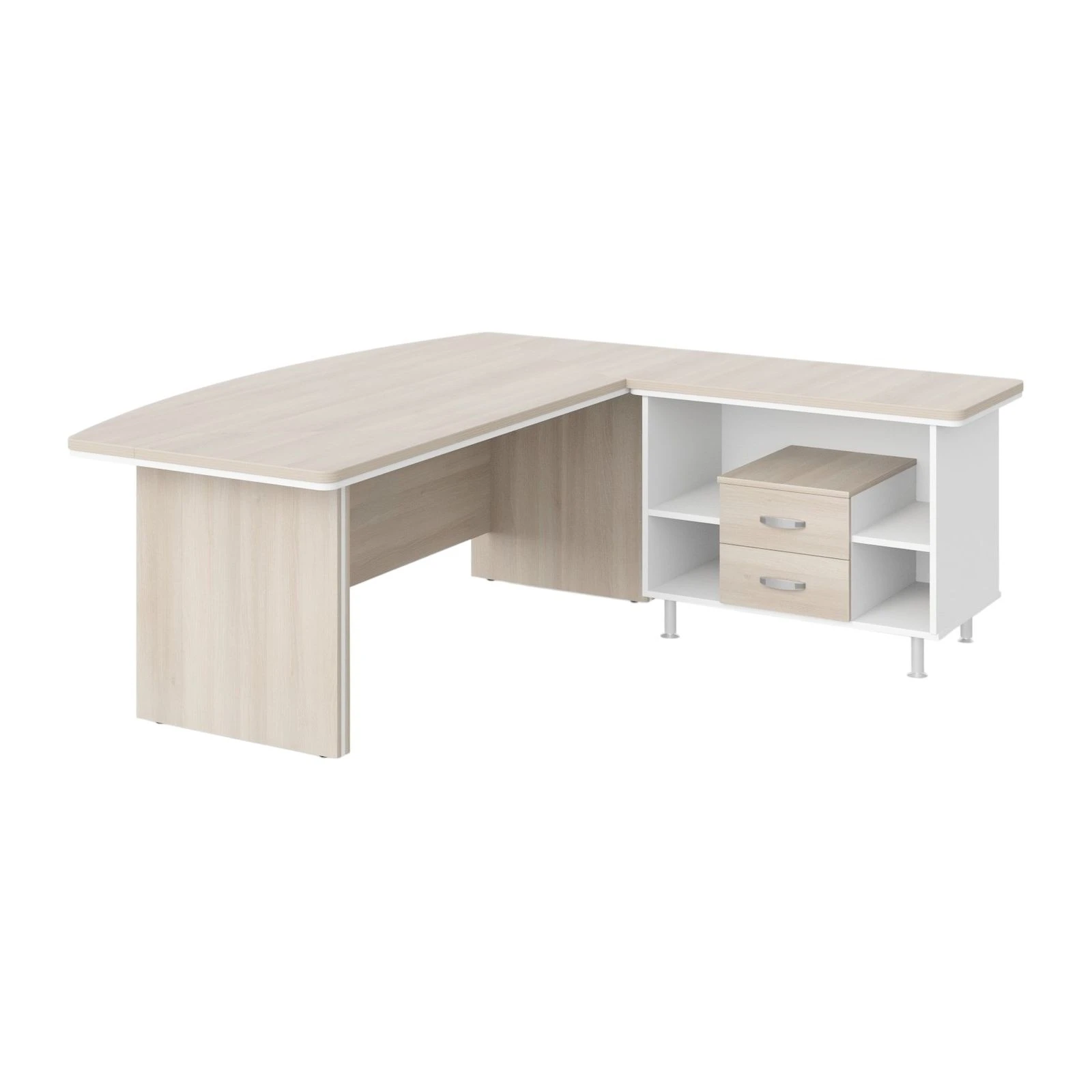 Стол руководителя угловой с тумбой 2 ящика R 180х205х76 Berlin Director Акация светлая/Белый премиум